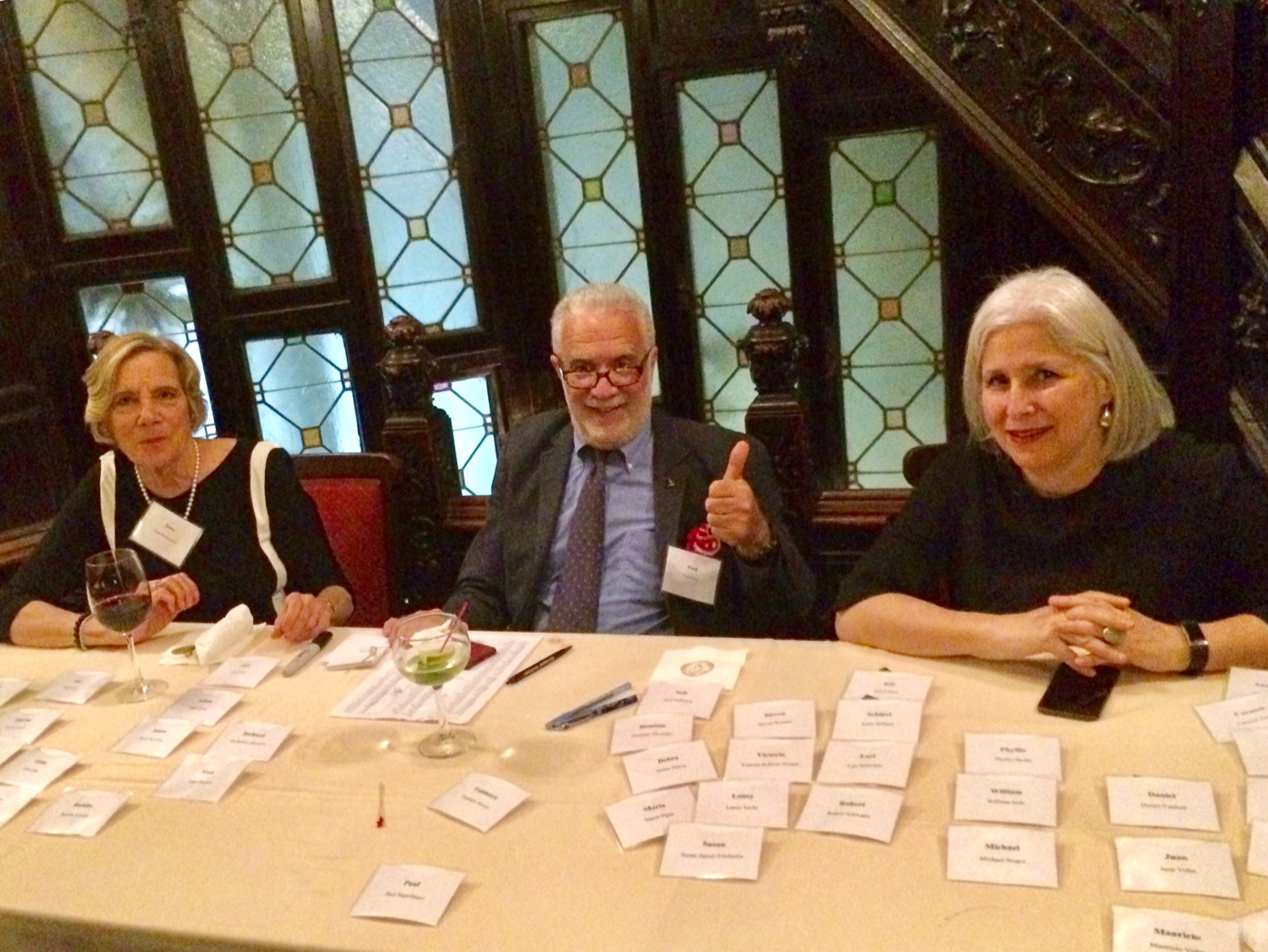 Founder Fred Klein flanked by two of his partners, Joan Rothermel (l) and Jane Jacobs staff the welcome table at our Winter Holiday Cocktail Party.