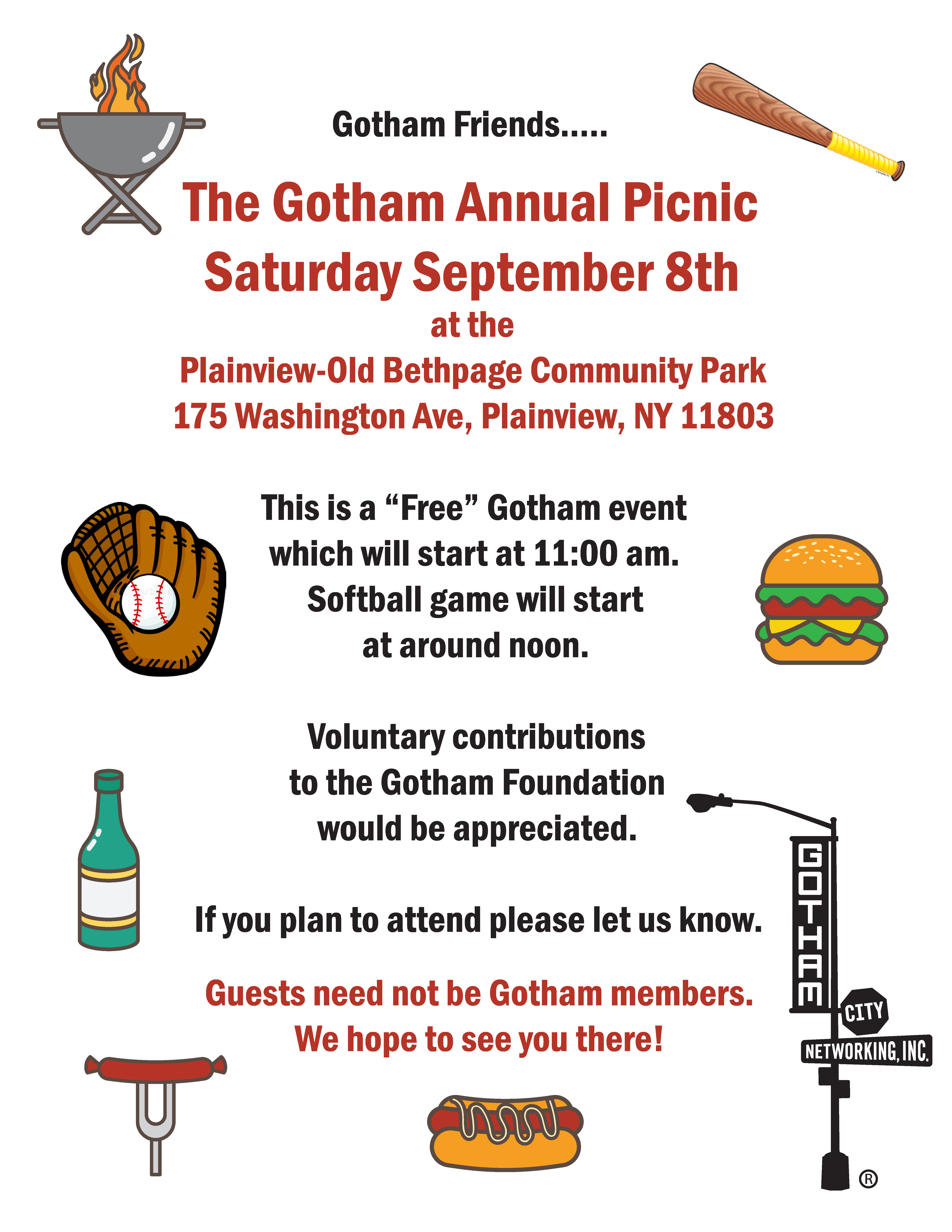 [Fredslist] Gotham Annual Picnic and Softball Game