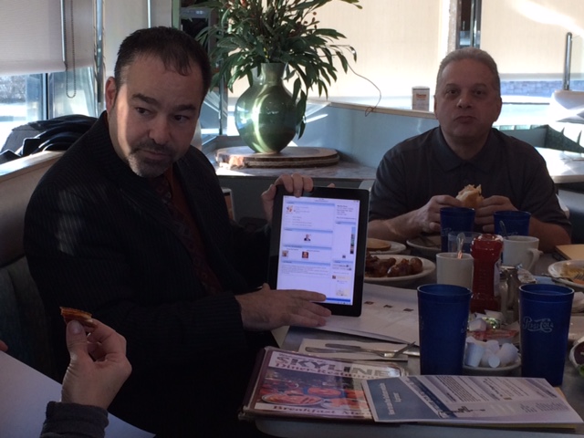 At GQ (aka Gotham Queens) this morning, group coordinator (& office machine sales pro) Dan Schwartz (in his first official meeting in the role) offers up his best “impression” of Gotham Webmaster (aka Mitch Tobol).