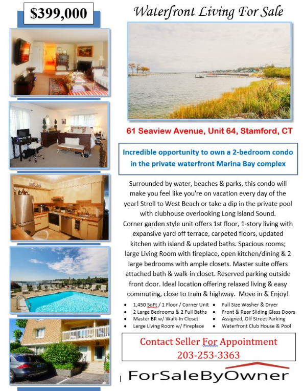 I am helping my mother sell her condo in a private waterfront complex in Stamford, CT.