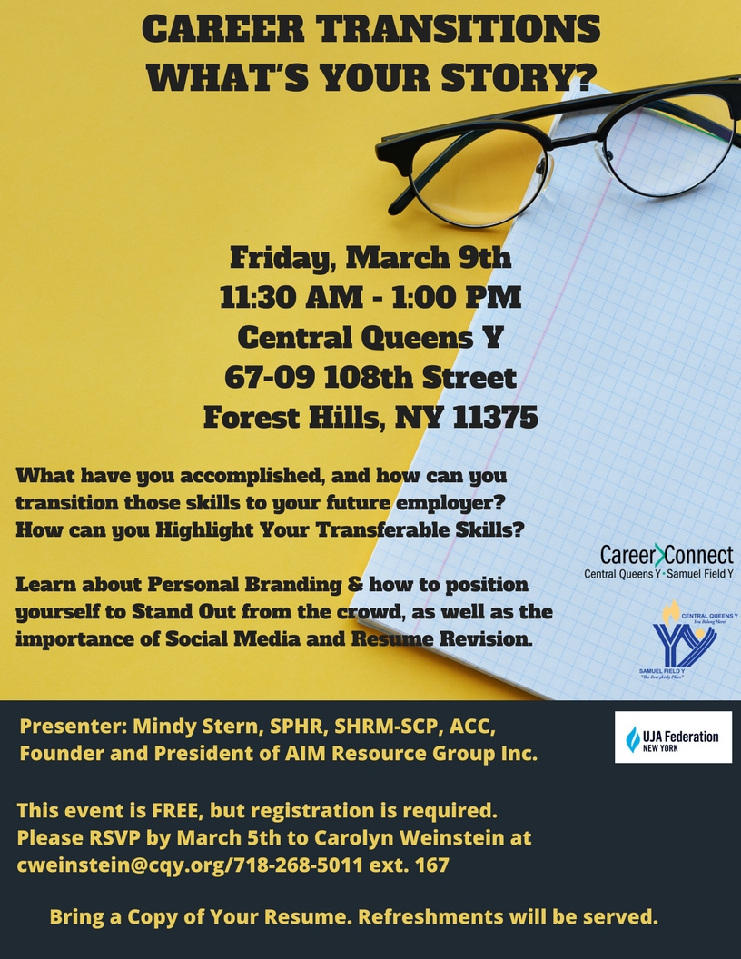 Please join us for a workshop at the Central Queens YM & YWHA Presented by