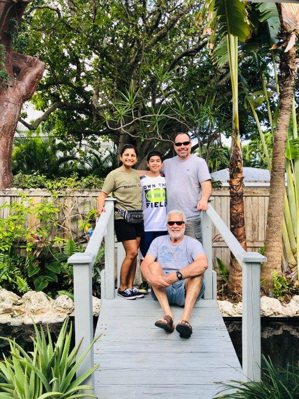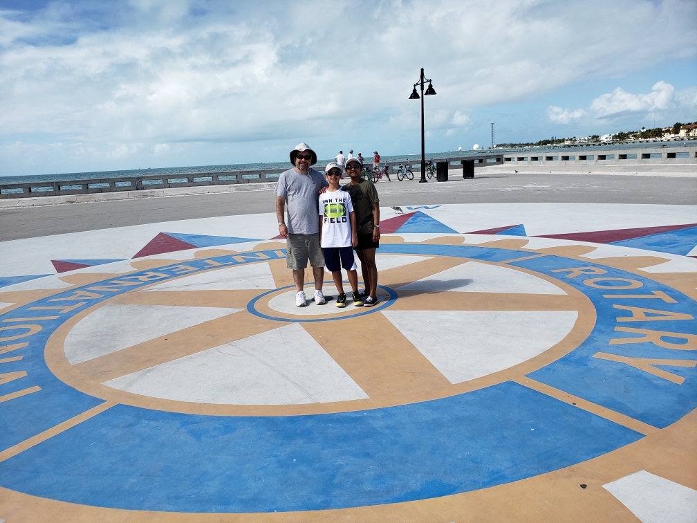 My family had the pleasure of driving down to Florida this past Presidents week. After a few days in Cocoa Beach, we headed further south to Marathon Key and eventually met up with Fred and wife Joanne at the beautiful Klein Cottage. After getting a tour of the lovely space with outdoor pool and bridge (picture attached), we proceeded to rent some bikes (best way to see Key West) and get a personal tour of some the many sites to see. This included stops to the White Street Pier, The Southernmost marker, the famous cemetery and few shops away from the touristy areas. In other words, the real Key West. He then graciously treated us to a delicious lunch at Blue Heaven. We visited the Green Parrot bar, took pictures at the famous Courthouse Deli bench and ended with a stop to the Harrison Gallery where Joanne had several pieces of her beautiful art displayed.