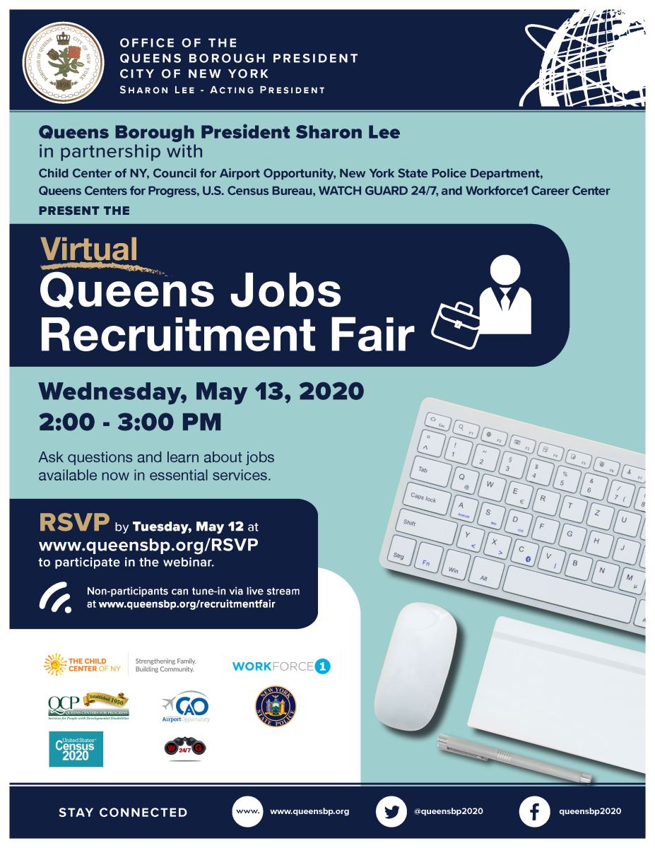 RSVP by May 12 to www.queensbp.org/RSVP to participate. Non participants can tune-in via live stream www.queensbp.org/recruitmentfair.