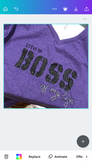 She is a songwriter and artist who is about to drop a studio album under the artist name Stevi M entitled "Boss of My Life". She is making T-Shirts to go with it because of the limited budget and doesn't have the demand for a large run. She has been buying the T-Shirts in Target actually and hand making them. I said I would check if there is a better way to do this. See the attached picture. Does anyone have any suggestion.