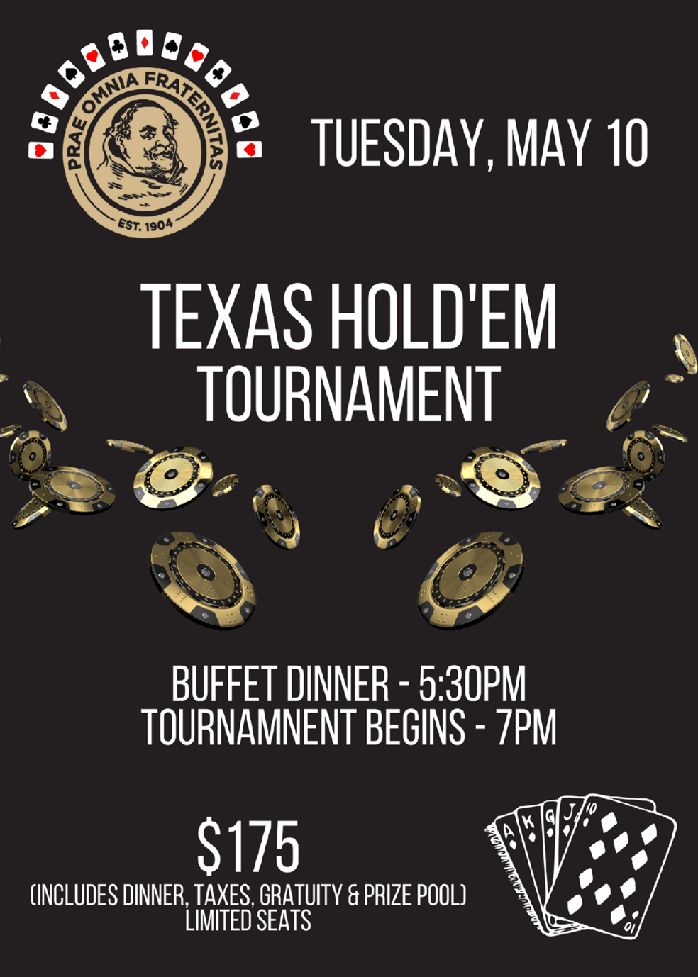 The Friars Club is running a Texas Hold-em tournament on May 10. I have a