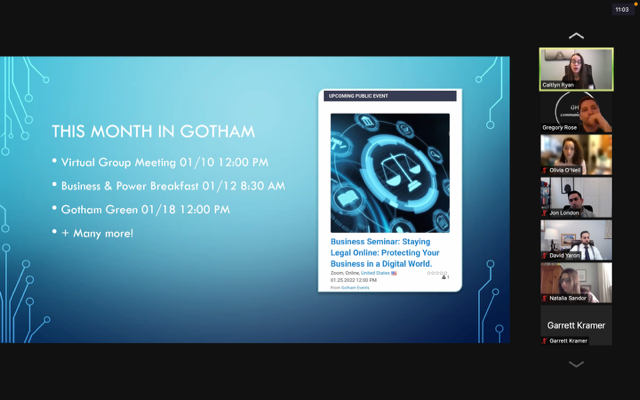Co-chairs, Steven Somma, an outsourced billing service for physicians, and Caitlyn Ryan, a corporate and healthcare attorney, pulled together a wonderful group. The conversations were meaningful and informative. There were breakouts and we engaged in an interesting way of getting to know one another. They totally get what the Gotham Community is all about and what we have to offer.