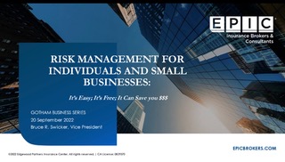 Presented by: Bruce R. Swicker, Vice President at EPIC Insurance Brokers & Consultants, has been a licensed insurance broker for nearly 30 years, and a member of Gotham Networking for over 20 years.