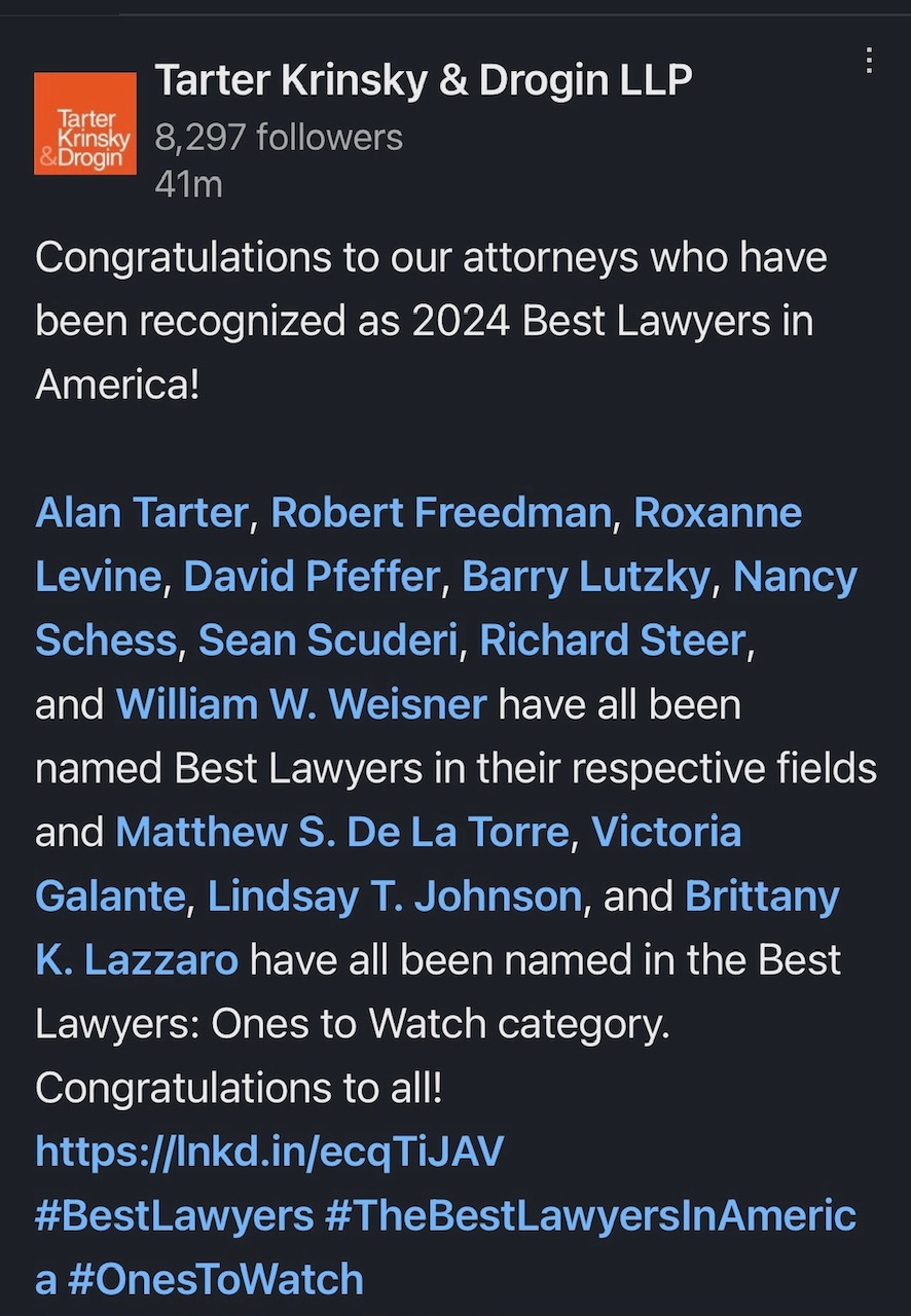 Tarter Krinsky & Drogin LLP, Attorneys-at-Law.