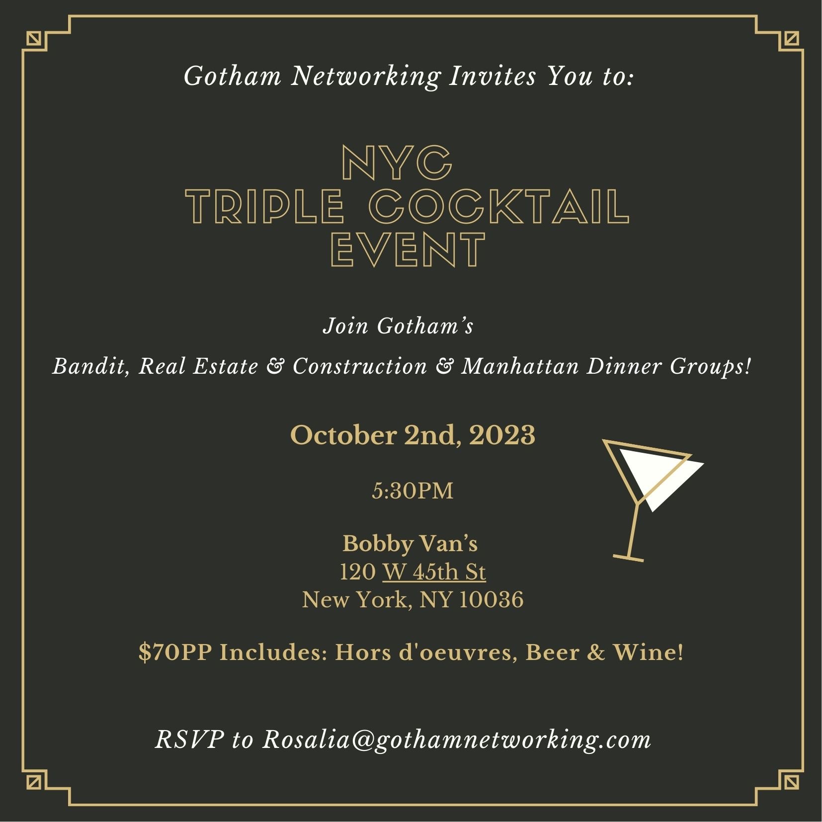 Subject: NYC Triple Cocktail Event ~ Monday, October 2nd at 5:30 pm ~ Bobby Vans/120 W 45th Street NY, NY 10036
