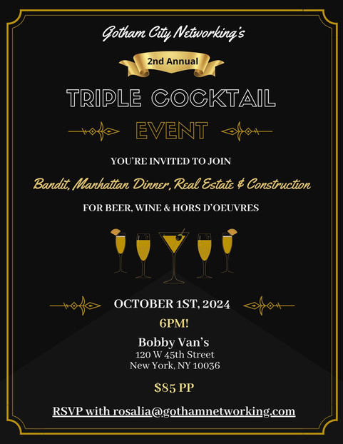 Gotham’s 2nd Annual NYC Triple Cocktail Event! <https://www.gothamnetworking.com/m/events/view/NYC-Triple-Cocktail-Meetup>