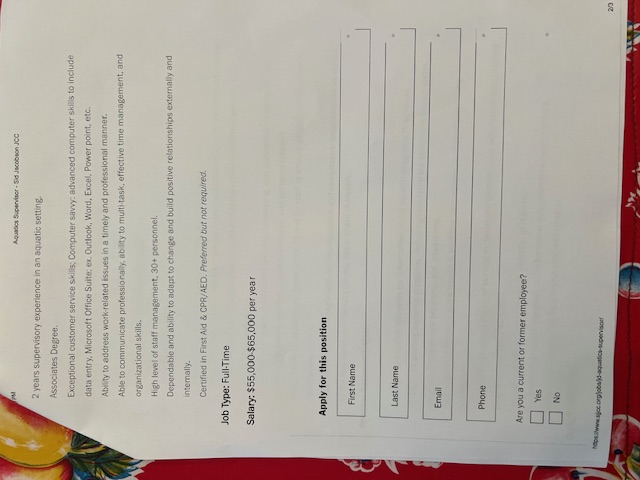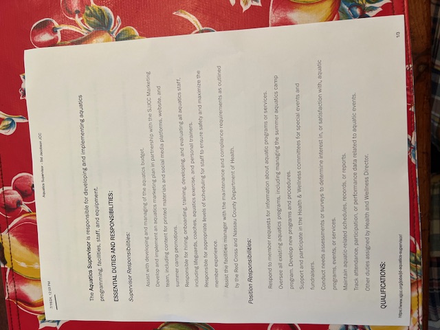 Aquatics Supervisor at SJJCC in Roslyn. Details below and on web site:
