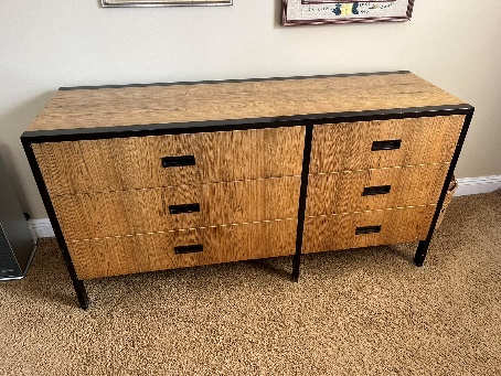 consisting of a wide 6 drawer dresser, high six drawer dresser and two end