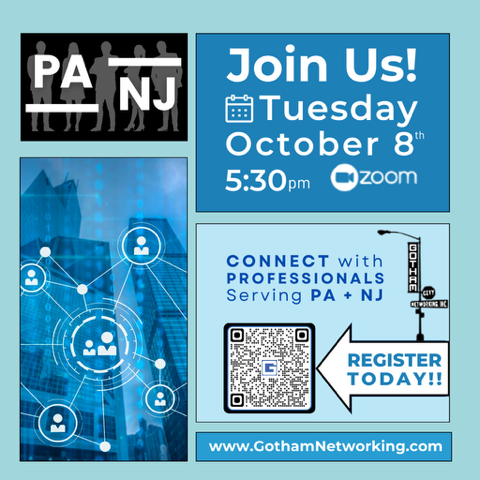 Welcome! You are invited to join a meeting: Gotham Networking: PA-NJ Chapter. After registering, you will receive a confirmation email about joining the meeting.