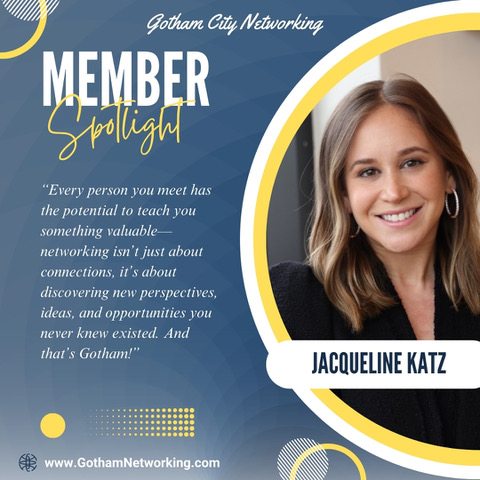 This month, we are proud to introduce you to Dr. Jacqueline Katz <https://www.gothamnetworking.com/Jacqueline_Katz>, a member in our Manhattan Dinner Group <https://www.gothamnetworking.com/m/groups/view/Manhattan-Dinner>! She brings an enormous amount of energy and fun to her group meetings. Jackie is an integral part of the team, always seeking advice from within the community, providing services and always sharing her industry knowledge!