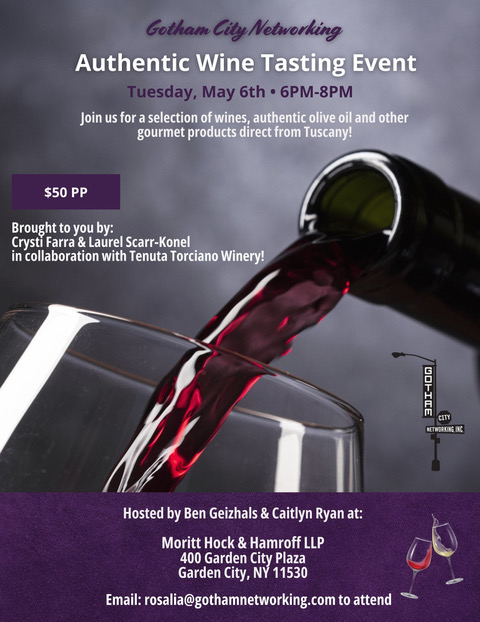 Crysti Farra<https://urldefense.proofpoint.com/v2/url?u=https-3A__www.gothamnetworking.com_CrystiFarra&d=DwMFaQ&c=euGZstcaTDllvimEN8b7jXrwqOf-v5A_CdpgnVfiiMM&r=cGoTVWL0ZoouzoQTm1g3GA&m=QSq9Y1vknNoEz014VfQTnnCAV1YS9jo_LE0s-IhoAW01WYsIS23vjR4Fg06o1FW5&s=u7u6TlPr88jUPcxPQ-GzIMLldX8UJEVk2WDQpvrus-Y&e=> & Laurel Scarr-Konel<https://urldefense.proofpoint.com/v2/url?u=https-3A__www.gothamnetworking.com_Laurel-5FScarr-2DKonel&d=DwMFaQ&c=euGZstcaTDllvimEN8b7jXrwqOf-v5A_CdpgnVfiiMM&r=cGoTVWL0ZoouzoQTm1g3GA&m=QSq9Y1vknNoEz014VfQTnnCAV1YS9jo_LE0s-IhoAW01WYsIS23vjR4Fg06o1FW5&s=qZPYPM26aMxlkCWcMboGBzpWY9kj04kpK7J85LCaQfA&e=> in collaboration with Tenuta Torciano Winery!