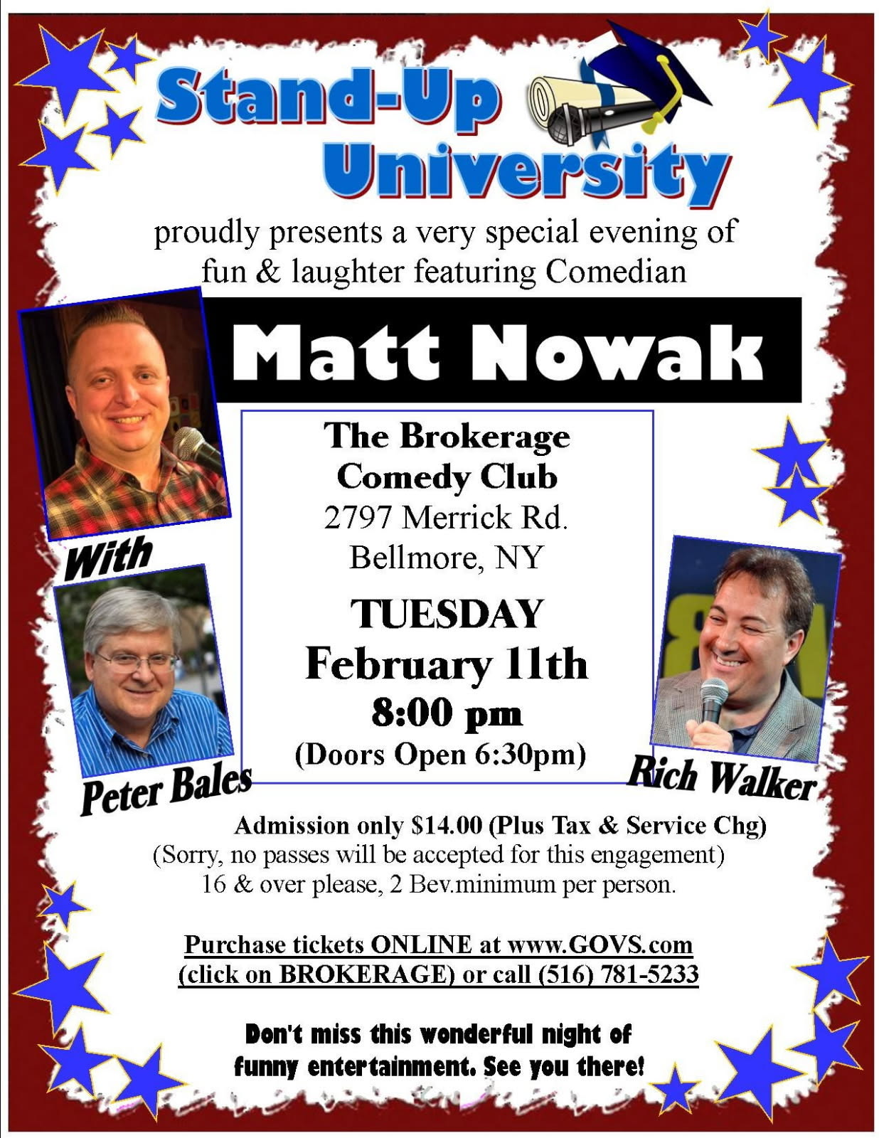 Unversity @Brokerage Comedy Club. I will be preforming at week 6 of my