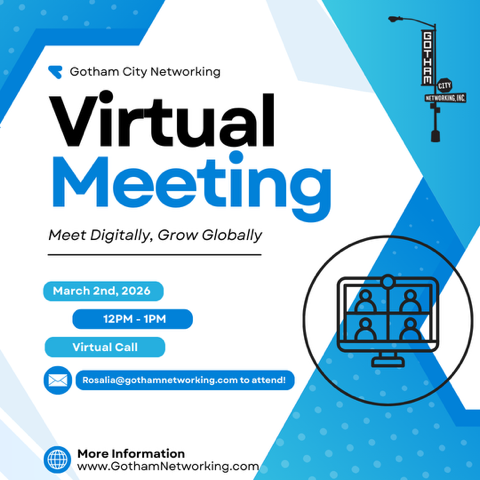 Join us for our upcoming Gotham City Networking Virtual Meeting and connect with dynamic professionals from a variety of industries all from the comfort of your home or office.