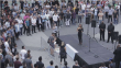 A huge crowd of men looking for love gathered in Manhattan’s Union Square last Saturday for a chance to date Natasha Aponte. But when they showed up, she told them they'd be battling it out to win her affections.