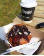 My friend uses the word "treats" to describe anything from cookies, ice cream, taffy, biscuits and even to coffee. She sent me a picture of her outing last week and said, "Niles and I even stopped for "treats"". When I looked at the picture, my mouth started watering and I imagined them sitting on a park bench with the soft warm sun shining on their cute faces. I could even taste the warm chocolate icing melting around what appeared to be a donut covered in Oreo bits. Since her first "treats" post, we have a running dual over finding the most creative coffee cup to have our afternoon coffee, and then toast and to post to creative mugs or paper coffee cups with "treats". I believe Starbucks won last year.
