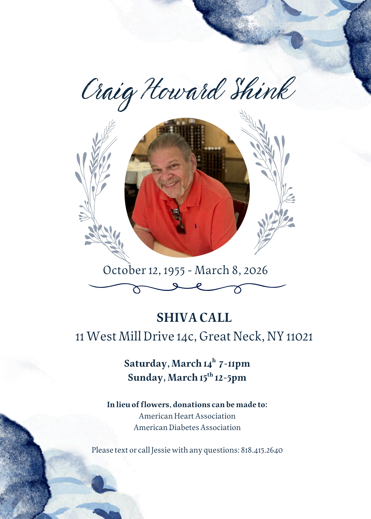 I share my eulogy for my dear friend Craig — who passed away a week ago (Sunday, March 8, 2026) today — at his funeral service this past Friday March 13, 2026, at Riverside Nassau North Chapel, 55 North Station Plaza in Great Neck, New York:
