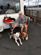 We were sitting on the back deck of the ferry from Orient Point to New London. As we approached New London, a man came over and extended two leashes to me.